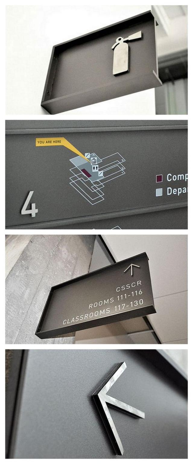 優秀的指示牌,創意設計與材質工藝與空間環境有效的融合在一起,最大化解決指示功能的同時,又不會對整體的環境造成損害。
