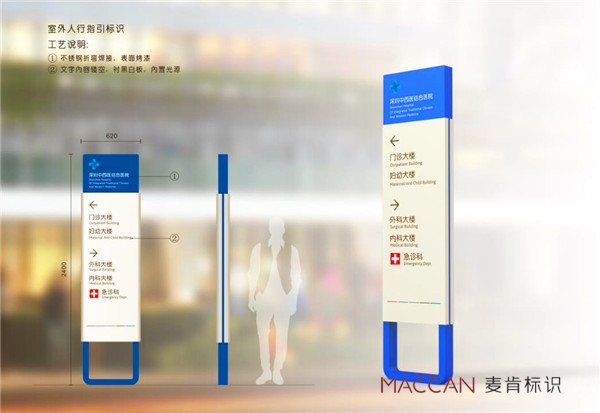 一級導(dǎo)向系統(tǒng)標(biāo)識:指患者或患者家屬來到醫(yī)院后,由各建筑導(dǎo)向的標(biāo)識。具體有哪些類別?