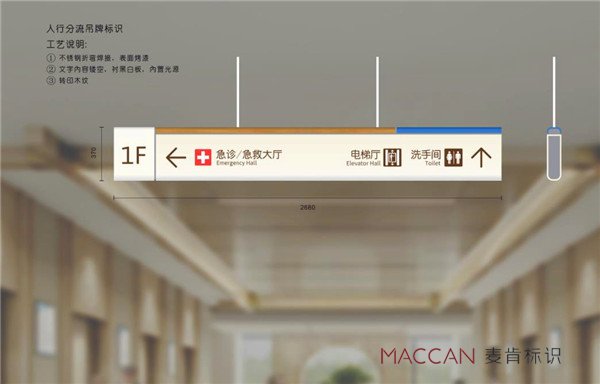 二級導(dǎo)向系統(tǒng)標(biāo)識:指醫(yī)生進(jìn)入某一建筑后,引導(dǎo)患者進(jìn)入某一科室的標(biāo)識。大致可以分為: