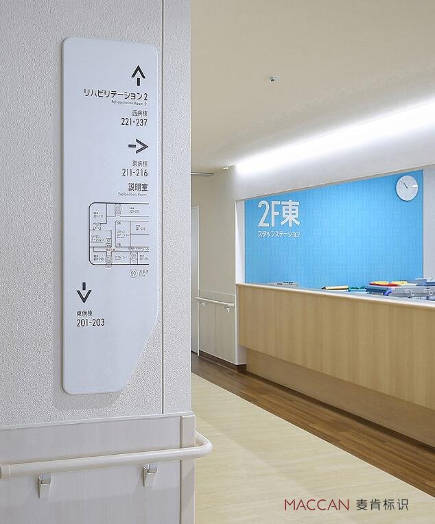 醫療機構標牌設計要自始至終站在病人的視角,依照病人的就診流程,科學、合理設計方案和制作,盡量滿足病人的需求。尤其是布局復雜的醫院中,不太可能開設過多的導診臺,因此 顯眼、直觀、恰到好處的標識是不可或缺的,并且可以具有非常大作用,即便第一次到醫院門診的病人也可以憑借標識牌知曉流程、便捷就診、獲取信息。
