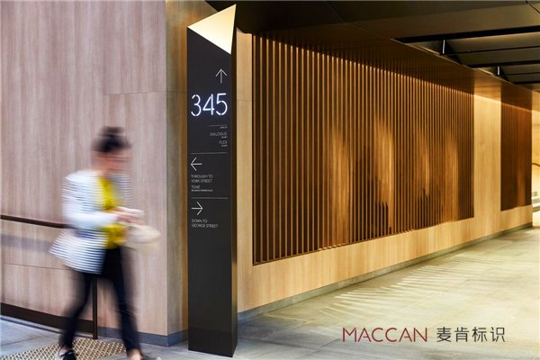 在不同的分類中,導視系統都是人在不同環境中獲取相關信息的來源,在設計上創新其實是在人與環境之間的創新。比如,企業文化與建筑在形態上的相互穿插與交融形成了獨特的視覺符號,成為品牌形象輸出的特殊端口。或者在設計思路中考慮特殊材質和制作工藝的優勢,在將平面視圖復制到空間環境中時打造出近看遠觀不同層次的視覺體驗。因此,設計師在設計導視系統時,應該將視線跳出電腦屏幕的限制范圍,考慮導視系統在更大延伸空間的使用場景。