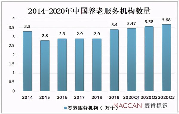 2019年中國養老服務機構數量為3.4萬個,2020年一季度養老服務機構數量為3.47萬個,2020年二季度養老服務機構數量為3.58萬個,2020年三季度養老服務機構數量為3.68萬個。