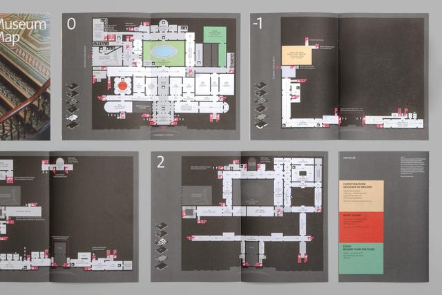 設計團隊還重新繪制了場館的地圖手冊,使得其展館的分布更為清晰可見,手冊也方便隨身攜帶。同時這套地圖還將放在數字環境中,因此許多重復使用的樓層與圖標都需要多方位地進行實用性與美觀性的雙重考慮。