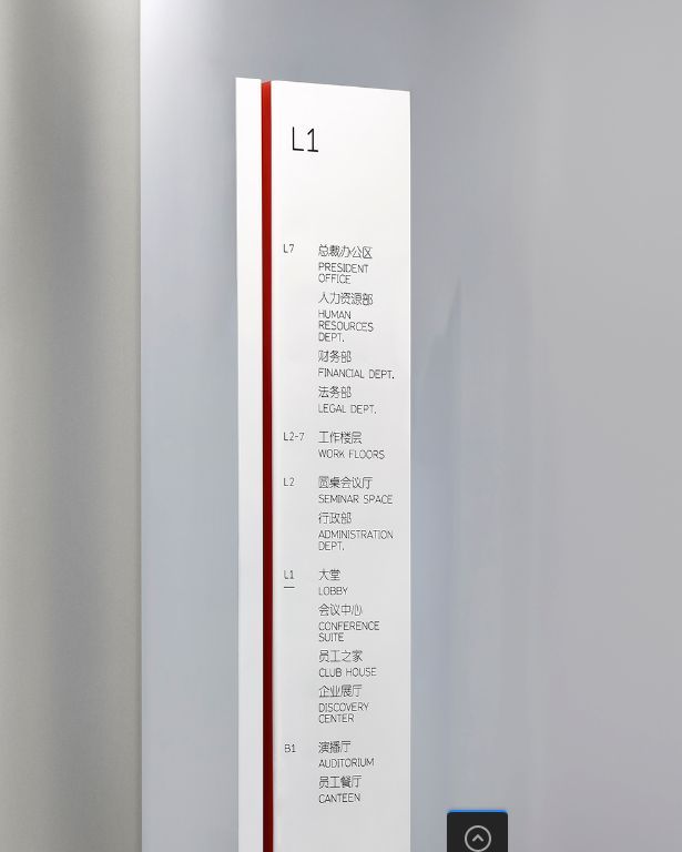 大廈標識的建立及完善能夠讓初來乍到人了解到整個大廈的結構布置,知道他們當時在整個大廈的位置,并且知道目標位置在哪兒,從而使得消費者能夠在大廈中輕松的知道自己所要到達的地點。