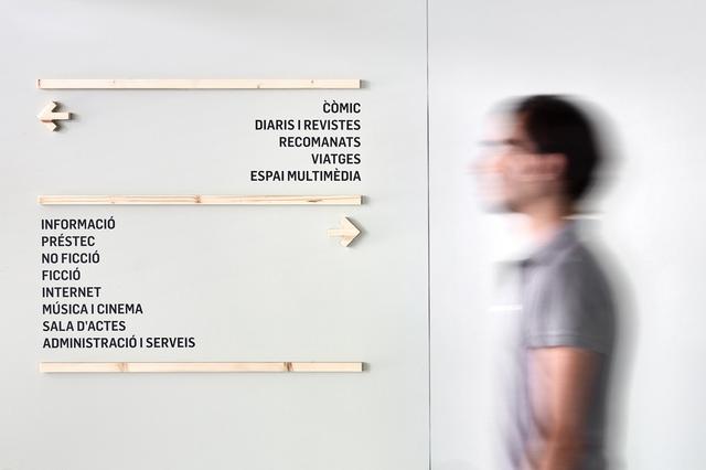Montbau圖書館是一個小型的社區圖書館,圖書館經過重新裝飾和擴展,繼而開發了一套新的標識導視系統。圖書館標識導視的設計除了要求在風格上要求與建筑統一,選擇干凈的排版和木材結合,三層不同木板的疊加營造不一樣的感覺,保持溫暖、溫馨和舒適的感覺。
