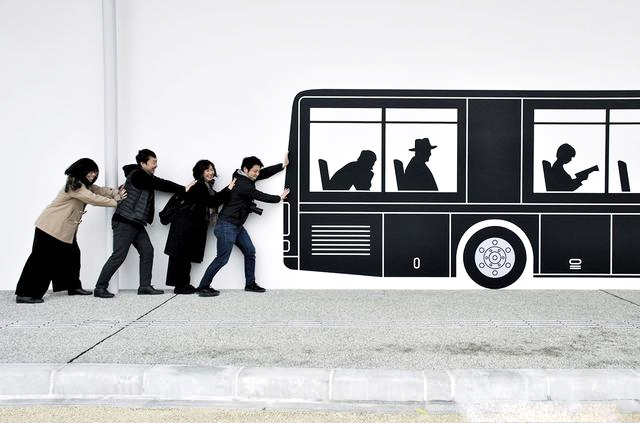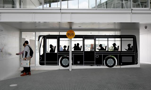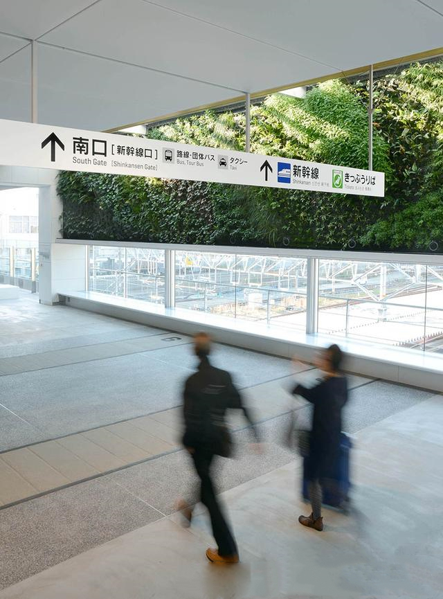 本套設(shè)計由KDM設(shè)計公司負責(zé),為了體現(xiàn)地區(qū)文化特性,增加游玩趣味,除了從JR檢票口到廣場簡潔易識別的導(dǎo)視外,還有各種墻面圖形等平面設(shè)計來豐富整個空間,包括火車頭、出租車等。
