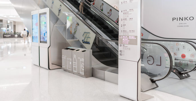麥肯團(tuán)隊(duì)針對(duì)萬象天地“全新的漫步式城市創(chuàng)作空間”的定位,制作了一整套清新、簡潔的標(biāo)識(shí)導(dǎo)視系統(tǒng),在物質(zhì)消費(fèi)之外,增強(qiáng)了藝術(shù)化、生活化的感覺。