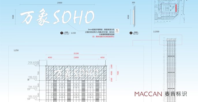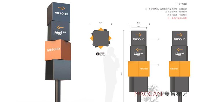 麥肯秉持“量體裁衣”的導視設計宗旨,在華潤提供的VI基礎上,我們做的標識延展設計。從圖標、字體再到導視造型,現(xiàn)代簡約不呆板,活潑又不夸張,使得導視系統(tǒng)能夠更好的融入華潤萬象SOHO的空間環(huán)境,契合建筑空間營造輕松的工作氛圍。
