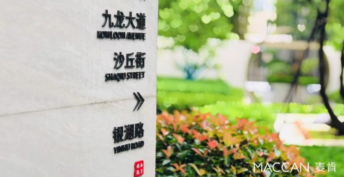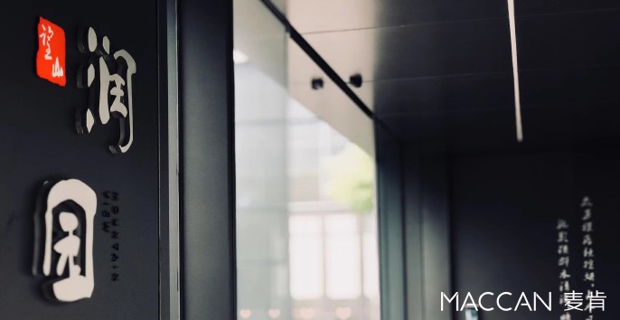 秉承著“居山水間者為上”的導視設計理念,麥肯設計師采山水之形,寓于導視設計之中,竭力打造極致的空間體驗與美學體驗,以當代性的導視設計手法摹寫山水神韻,在 豎向空間里演繹國畫的焦墨筆觸。