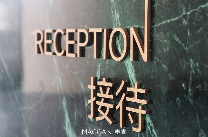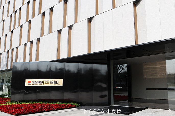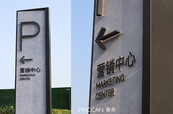 以提升深圳龍崗崗宏整體建筑空間和導視系統為重點,提升營銷空間高端商務服務功能,麥肯標識設計是在舒適與奢華、顯示、和欲望之間,尋找平衡的永恒調整,立足場地,融入國際化與未來感、以及新中式,把標識高級定制概念帶進住宅營銷空間。