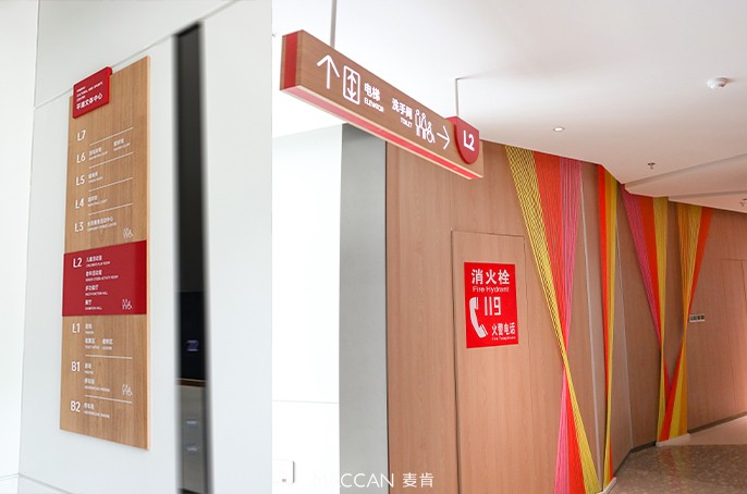 麥肯標(biāo)識(shí)受邀為其標(biāo)識(shí)導(dǎo)視服務(wù),其中為龍崗區(qū)首個(gè)街道文體中心——平湖文體中心。標(biāo)識(shí)在其中扮演著重要的商業(yè)角色,引領(lǐng)著人們走向各自興趣方位,跳動(dòng)的顏色與樓梯漆面顏色交相呼應(yīng),在導(dǎo)視系統(tǒng)中與環(huán)境整體調(diào)和,室內(nèi)躍動(dòng)、活潑、多姿多彩的豐富感油然而生,極具充沛向上的能量,介入人們每一刻進(jìn)入文體中心的欣然心情。