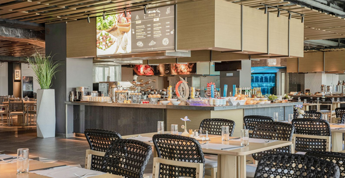 酒店大廳、自助辦理、云尚餐廳、健身房、泳池、網紅平臺等空間通過標識導視牌都與酒店建筑保持了充分聯系,為不同類型的活動賦予了靈活而開放的動態體驗。訪客們可以在不同的空間中自由漫步和探索,讓好奇心得到充分滿足。
