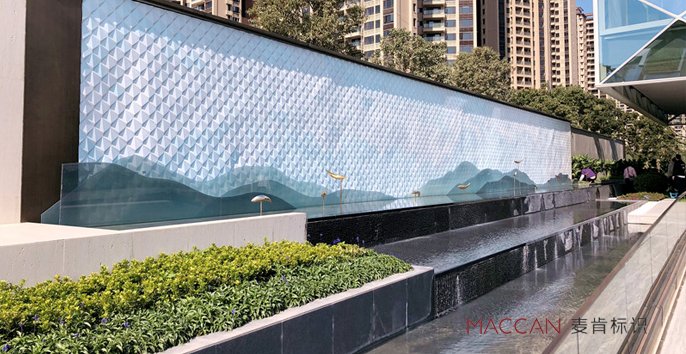 標識牌設計元素選取云境臺的建筑設計概念元素,融合鏡與水,帆與幾何體為一體,結合優雅的弧度,簡化建筑造型的棱角線條,秉持大道至簡,人與自熱的理念。從初步構思之時,就對空間進行了探索性和引導性的實驗,如何將分層的空間有效的去引導與傳達,思考如何將標識指引藝術作品融入空間,成為空間的一個組成部分。以光之力,與藝相輔,結合材質鏡面與金屬元素,其結構的變化,令光的融合度也產生了變化,在日與夜的變化之中,通過微妙的色調改變著整個空間的氛圍。