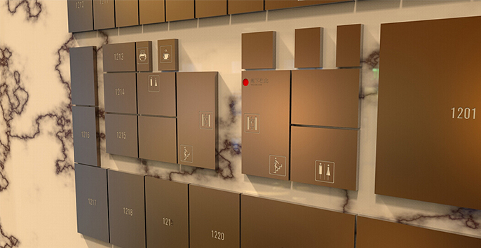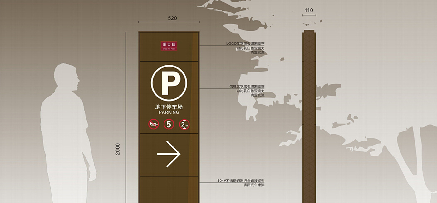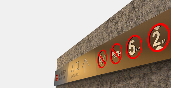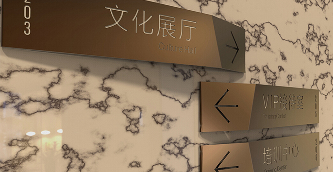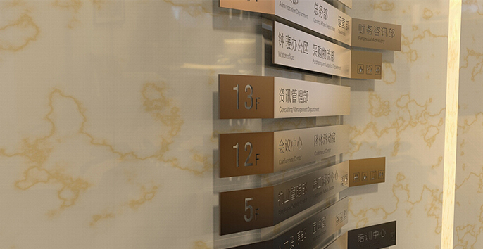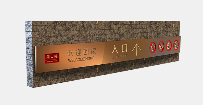 麥肯設計方案的出發點注重與空間環境的緊密結合度,在簡約的標識設計靈感下,充分考慮周大福大廈空間的屬性和使用人群,并結合室內裝飾特點進行提取糅合,從而通過標識設計更好地展現出環境空間的裝飾性以及集團品牌系統的強大性和品質感。